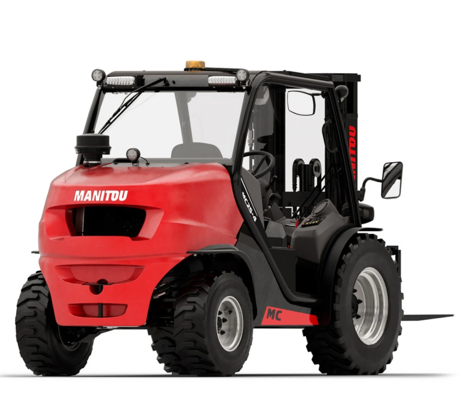 Take advantage of its performance to handle your loads with ease whatever the terrain conditions (rough, uneven, muddy and slope-crossing surfaces). The MC 30-4 truck adapts to all your applications thanks to its great versatility. Optimize your operations and work in complete safety with the Manitou MC 30-4 rough-terrain forklift truck!