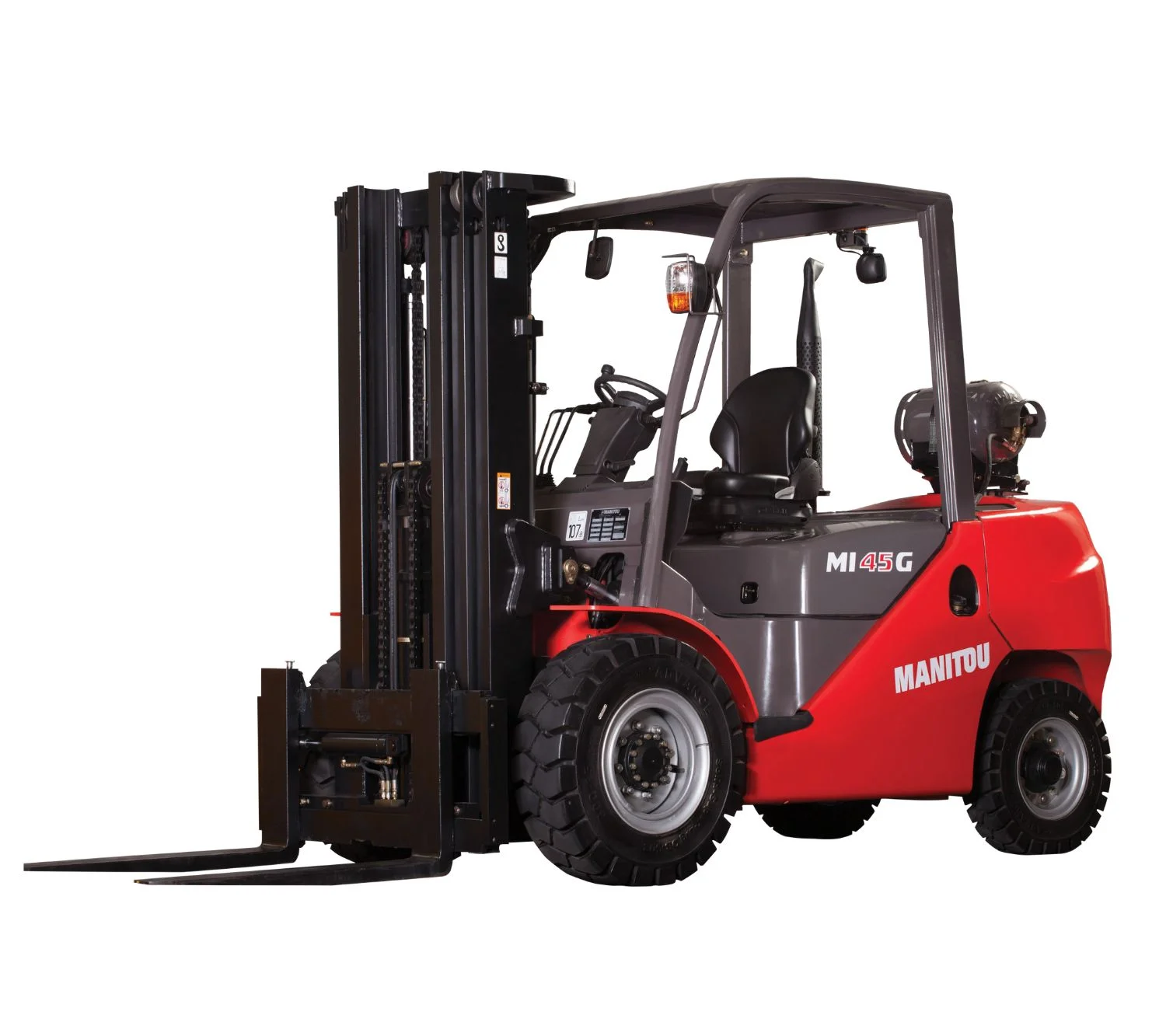 The Manitou MI 50 G masted forklift truck is a gas-propelled machine that is ideal for both indoor and outdoor working. Its large range of masts, tires, attachments and customized solutions ensure that you will always find the ideal solution for your applications and requirements
